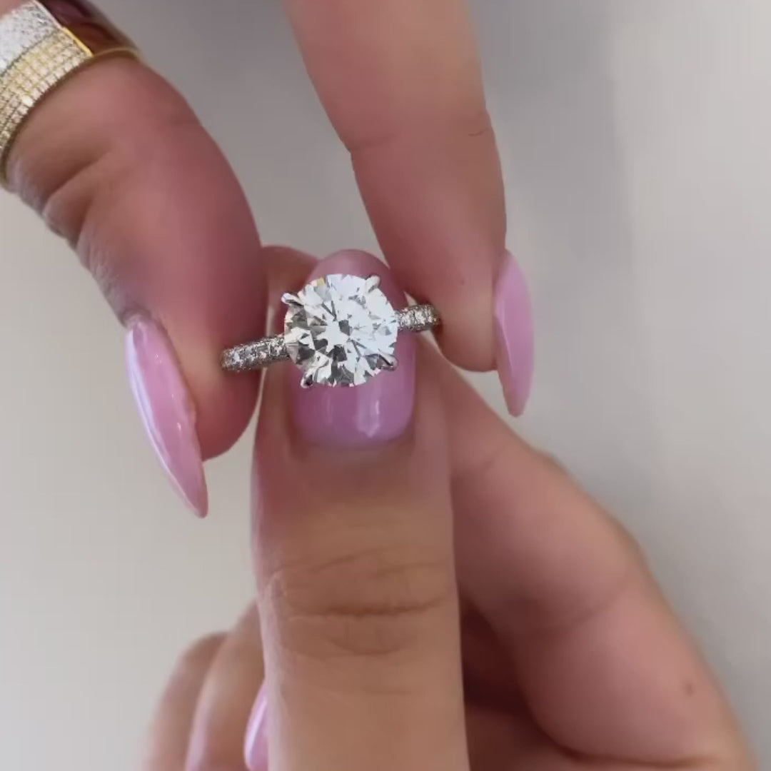 Round 2.50tcw Lab Diamond Ring | Hidden Halo & Pavé Band | IGI Certified | White Gold