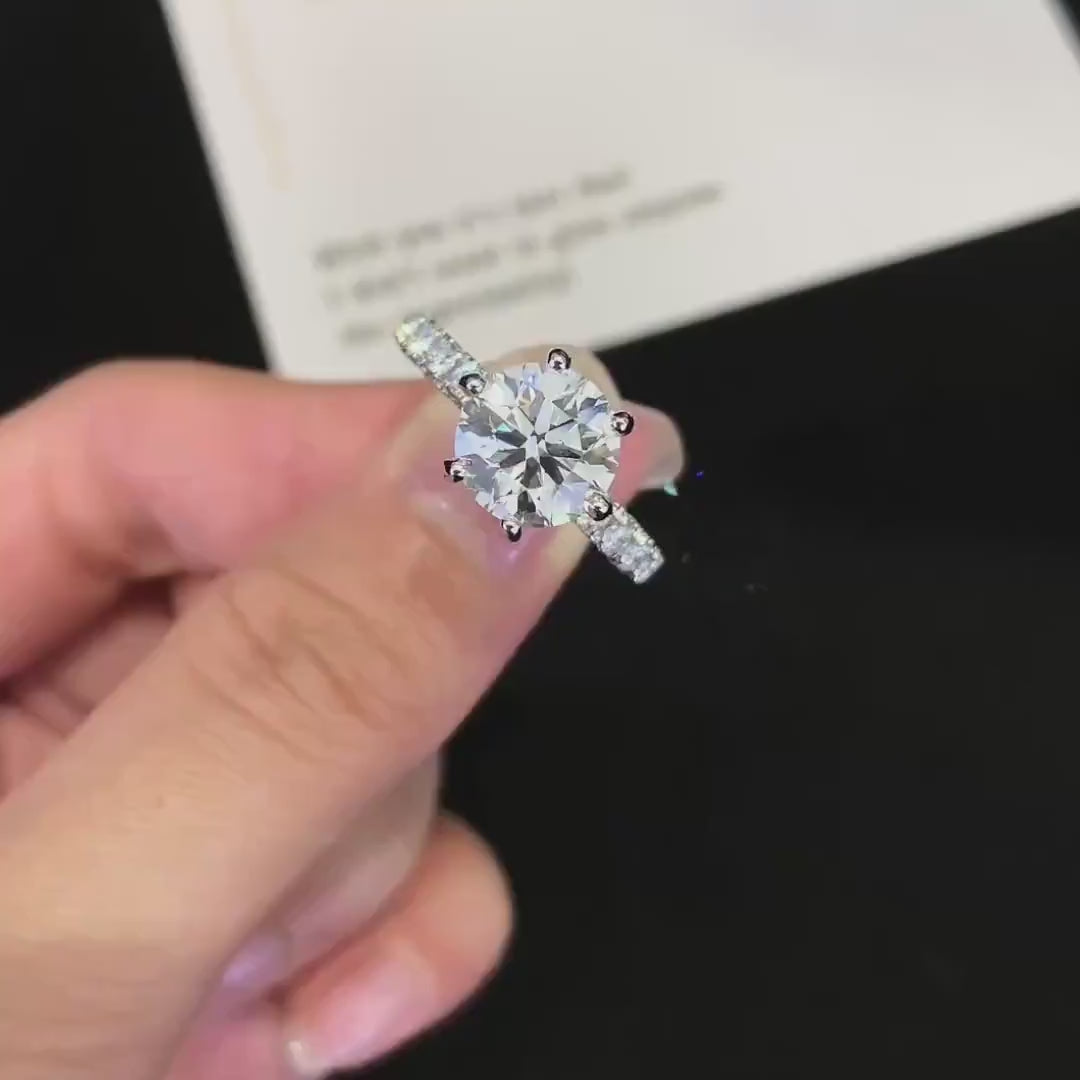 This 3.30tcw lab-grown diamond ring features a 2.50ct round brilliant center with 0.80ct round accent diamonds. IGI certified, DEF color, VVS–VS clarity. Bold, elegant, and timelessly crafted.
