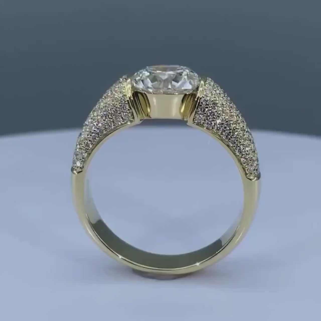 3.00ct Men’s Lab Grown Diamond Tension Pavé Ring | IGI Certified | Yellow Gold | VVS–VS Clarity