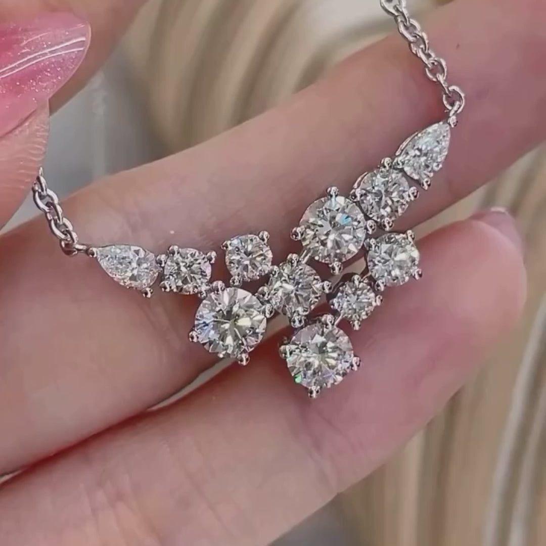4.00tcw Round And Pear Lab Diamond Necklace | IGI Certified | DEF VVS–VS Clarity