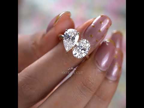 A stunning 4.00tcw Toi et Moi ring featuring a 2.00ct oval and a 2.00ct pear lab-grown diamond. Set in solid yellow gold and IGI certified, this design beautifully merges modern love with timeless elegance.