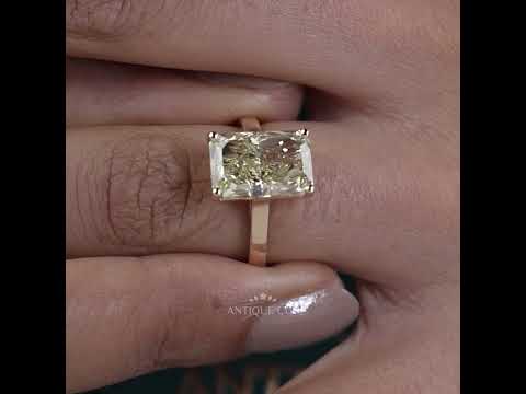 4.50ct Yellow Radiant Cut Solitaire Engagement Ring | Fancy Yellow Diamond Ring | Gold Radiant Engagement Ring | Classic Statement Ring